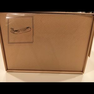Ballet flats in nude/beige color with gold toe and gold bow on front of shoes. Soft leather and elastic. Run 1/2 size snug.