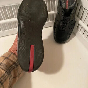 Perfect for Sumer cute design with Prada red logo in the back of soles. No damage or any other flaws. Just you need to replace the shoelaces I cut it to make it shorter