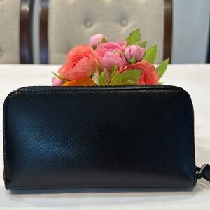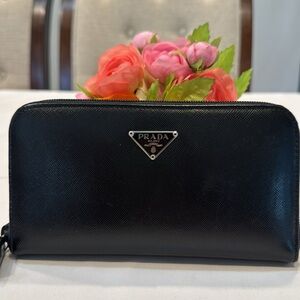 Authentic Prada zippy wallet. It has very mild scratches outside that are barely noticeable but other than that there’s no other flaws to mention. It has no stains, no discolorations, the zipper and corners are good and inside is very clean without unpleasant smell. PRICE IS FIRM!!!