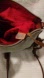 Elegant green cream crossbody with rich brown trim. Features front zipper pocket and adjustable strap