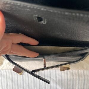 In excellent condition. I purchased this bag years ago from another seller, took great care of the bag. Plain and triangle print lining. Structured, sturdy. Some plastic film still on hardware of the bag. (see photos). Stainless steel on buckle of strap slightly yellowed. Slight leather rubbed off (see pic #10) inside bag, unnoticeable. A few white marks on the base. Super versatile. Authenticated on other platform as well, buy with confidence.