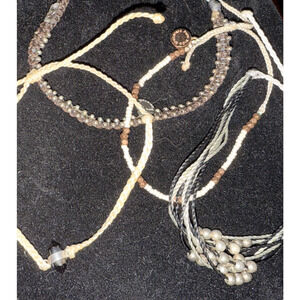 Authentic Pure Vida bracelet set of 3 and one unbranded bracelet - beaded, crystal charm, brown, bronze - beach, boho, summer, festival, cruise. These bracelets are in excellent preowned condition with no rips, holes, or stains. Please see images for details and approximate measurements.