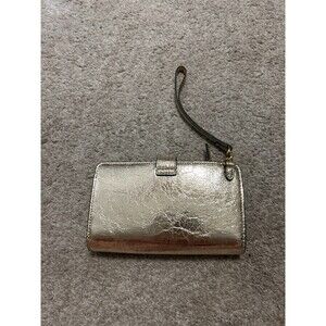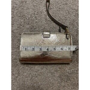This Authentic RALPH LAUREN Metallic Gold Wallet/Wristlet is a luxurious and stylish accessory for women. The solid gold color, logo accents, and metal theme add a touch of elegance. This wallet features multiple credit card slots, a folding design, and a convenient wristlet strap for easy carrying. this wallet exudes sophistication and is perfect for any fashion-forward individual looking for a chic and practical accessory.
