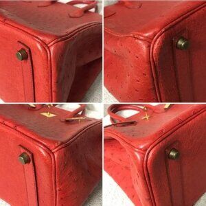 Authentic RARE HERMES Hac Birkin 32 bag Ostrich leather Rouge Vif red