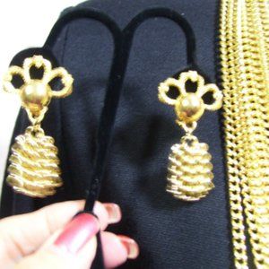 Authentic, RARE Hobe, Multi Strand Necklace, Earring Set, Gold, Floral Motif