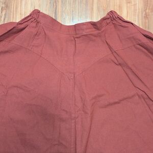 Beautiful drop waist styled paneling Authentic Ranchwear brand skirt. Amazing muted brick red color. Features a rear zipper and elastic waistband. Perfect for a western boho fit.