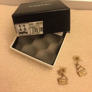 Wear your Chanel on your sleeve and your ears! Highly coveted, gold earrings with a mini 2.55 and Chanel logo dangling from them. Medium sized so they won't weigh you down.
