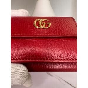 Authentic Red GUCCI GG Marmont Leather Trifold Wallet