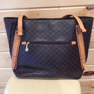 This Rioni handbag is 15"X11"x3" with zipper enclosure on top. Back zipper pocket. 2 side zippers can open to expand the width. Small zipper pocket inside. Outside is perfect ! Interior has a rip at the bottom of the cloth.