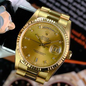 Authentic Rolex Day-date 18238 18K Yellow Gold Factory Dial 36mm Double Quick
