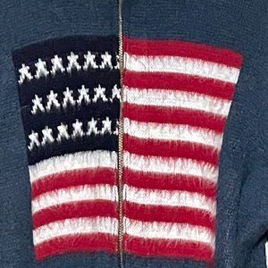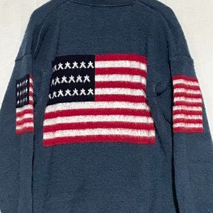 Authentic Ruminahui full zip sweater,100% Wool, USA Flag, made in Ecuador