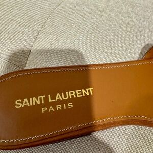 Authentic SAINT LAURENT YSL TRIBUTE AMBER BROWN LEATHER SANDALS FLATS MULES 39/8