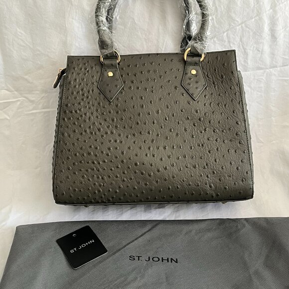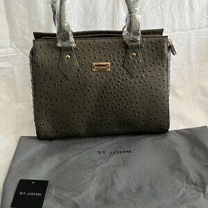 Authentic, ST JOHN Pebble Ostrich Leather Satchel, New, Pristine, never used with tags and dust cover.