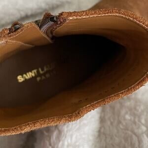 Authentic Saint Laurent Brown Suede Leather Harness Pointed Ankle Boots