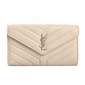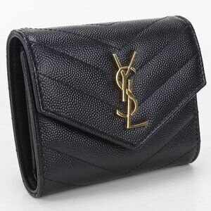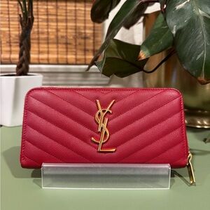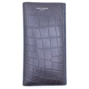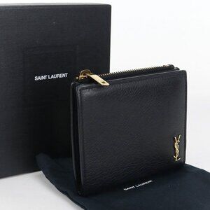 Excellent pre-owned condition. 100% Authentic Saint Laurent Studded Zip Around Wallet in Grain de Poudre. Color: Black/Silver. Style: INN362760. Serial #: INN362760-0714. This Saint Laurent wallet is a striking accessory crafted from black grained leather with an edgy studded design. Featuring silver-toned metal studs in a symmetrical grid pattern, the wallet embodies the modern sophistication of Rive Gauche with a rebellious edge. Black grain de poudre leather with silver-toned metal studs. Silver-toned full metal zipper and pull engraved with Saint Laurent logo. Full zip-around closure for security and easy access. 12 credit card slots, compartments for cash, and a central zippered coin pouch. Saint Laurent Paris branding subtly embossed inside with serial number. Beautiful condition, no scratches or scuffs on the leather. All studs intact with no tarnishing. Interior compartments are clean. Faint hairline scratches at zipper pull, barely visible. Zipper runs smoothly and opens and closes with ease. Leather has been recently conditioned and is ready for its new owner. Purchase comes complete with Saint Laurent gift box, Saint Laurent dust bag and authenticity cards.