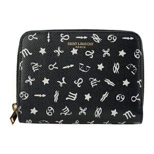 Authentic Saint Laurent Studded Zip Around Wallet Grain de Poudre Black Silver