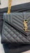 Saint Laurent Envelope Triquilt Medium YSL Shoulder Bag in Grained Leather. Black leather with gold hardware & chain.