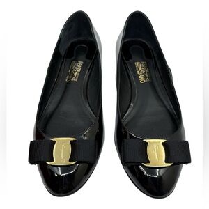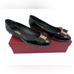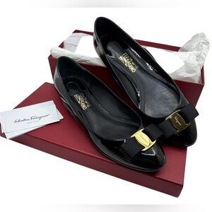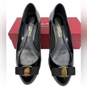 Authentic Salvatore Ferragamo Vara Bow black patent leather shoes size 8.5B