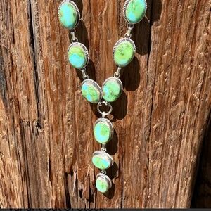Authentic Shirley Henry Sonoran Gold Lariat 23” Necklace Set. 3” Lariat. Spring Clasp. Dangle Earrings about 3/4” length. Sterling Silver. Native American Made. This is a one of a kind item. Absolutely gorgeous!!