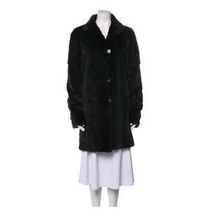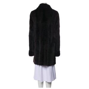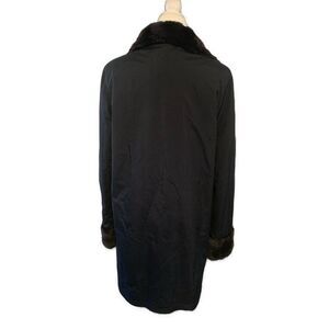 Authentic Solid Black Genuine Fur Long Sleeve Reversible Rain Coat Jacket Small