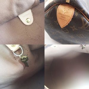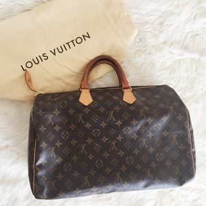Authentic Louis Vuitton Speedy 40! Included are a dust cover, lock, and two keys. It is in excellent condition! It shows beautiful patina on the handles. The inside has a few marks, but no one besides you would ever see. ;) I purchased it at the Las Vegas store in 2011. The only thing I would consider trading for is a LV Neverfull. Thank you for looking! :)