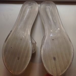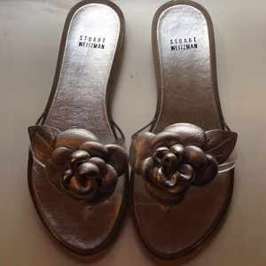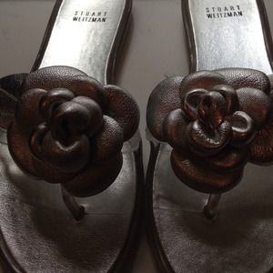These are authentic Stuart Weitzman jelly flip flops with a silver metallic soft leather flower in each. They have been worn one time. They run slightly bigger than I like my flip flops but seem to be true to size. These were purchased at Saks Fifth Avenue. I ship fast in original packaging and am happy to bundle. No trades, please.