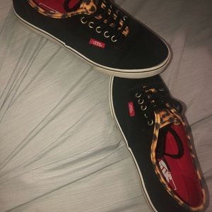 •Authentic style vans with black, cheetah outlining and red on the inside.