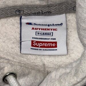 Authentic Supreme x Champion Hoodie Grey Pullover Sweatshirt Logo Rare Sz XL