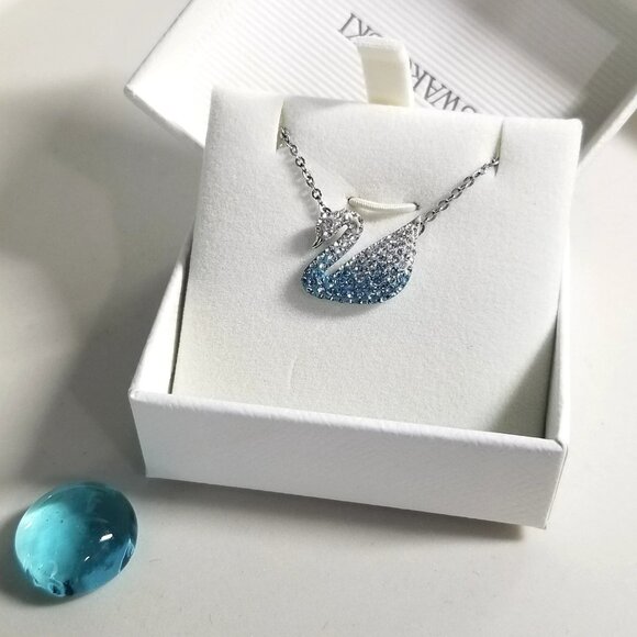Authentic Swarovski Iconic Swan Pendant Necklace Silver Tone Rhodium Plated Box