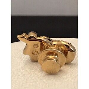 This fantastic Swarovski tac pin is gold tone with brown enamel and features a masquerade mask with crystal accents.