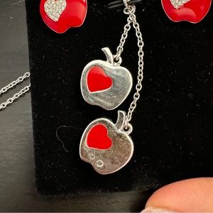 Authentic Swarovski Red Apple Crystal Enamel Apple Earrings and Necklace Set
