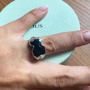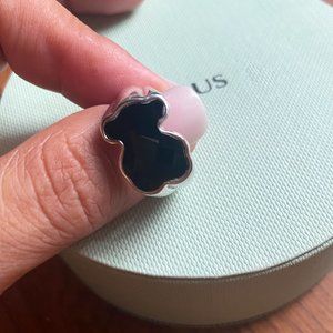 Elevate your style with this authentic TOUS Silver Onyx Bear Earrings and Ring Set.