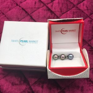 This listing is for ONE pearl (I have 3)Beautiful authentic Tahitian Black Pearls I bought on vacation in Bora Bora. See these at tahitipearlmarket.com. I always meant to make necklaces with these. The third sold will not have box from the pearl store. See measurement photo. Approximately 9-10mm. Update 6/10- 1 pearl is left. The one left has a slight natural indention as shown in the photo-please see the last pics and the one with the magnifying glass for details. Priced accordingly.