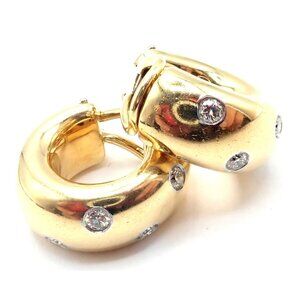 Authentic! Tiffany & Co 18k Yellow Gold Platinum Diamond Etoile Hoop Earrings