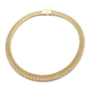 The Tiffany & Co 18k Yellow Gold Somerset Mesh Necklace showcases a luxurious mesh design crafted in gleaming 18k yellow gold.