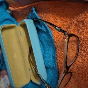 Chic Tiffany & Co. glasses with a stylish black frame. Brown accents add a touch of elegance.! Lens 2.75 Must be Change to your Eye Strength, if you Wish...Clean No Scratches on Lens, Clean! Free Tiffany Case Included!