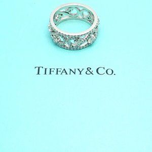 Authentic! Tiffany & Co Platinum Diamond Enchant Scroll Wide Band Ring Size 6