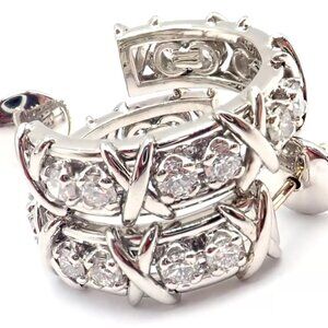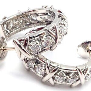 Authentic Tiffany & Co Schlumberger Twenty Stones Platinum Diamond Hoop Earrings