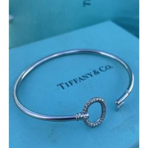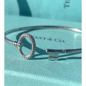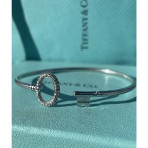 Authentic Tiffany & Co. White Gold 750 Diamond Oval Key Wire Cuff Bracelet Box