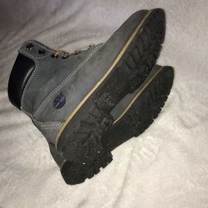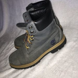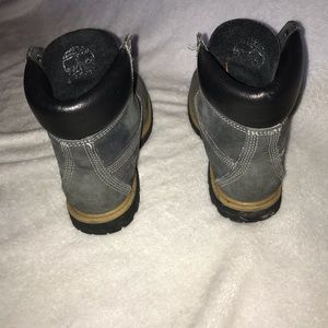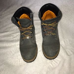 These boots are in overall pretty good condition! They are a darker grey (look at pics for variation), and have minor wear and tear in them- see pics.