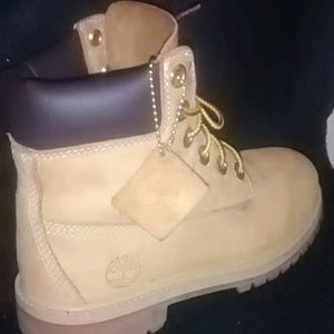 Timberland boots . Creased a bit on the right shoe but not too much . Other than that perfectly fine . Might discount if asked . Say size 5 but can fit 5 1/2