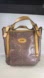 - P.S. exterior canvas is showing light scratches/scuff lines, tan leather trim has some marks/darkness, the crossbody strap is MISSING, silver-tone hardware is light scratches, stains/marks on interior (please see all photos as part of description)
