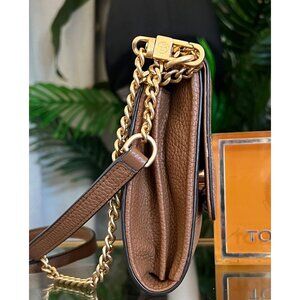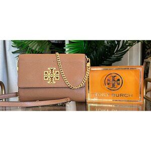 Authentic Tory Burch Camel Brown Leather Britten Shoulder Bag