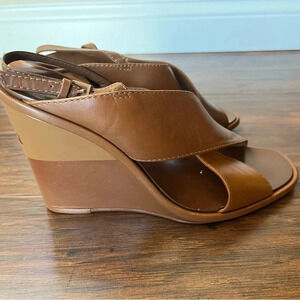 Authentic Tory Burch Gabrielle Wedge Sandals- Size 9 Brown