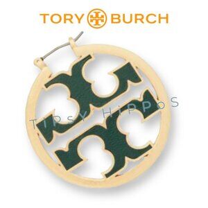 Authentic Tory Burch Miller Hoops in Hunter Green and Gold