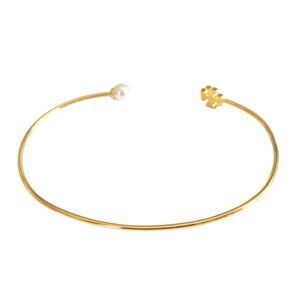 Double T is transformed into graphic hardware on the Kira Pearl Cuff a slim wire bangle in gold-plated brass.