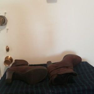 Beautiful chocolate brown UGG heels set on a little platform, 4" total. Very classy, comfy and lined at the toes, so it's warm!