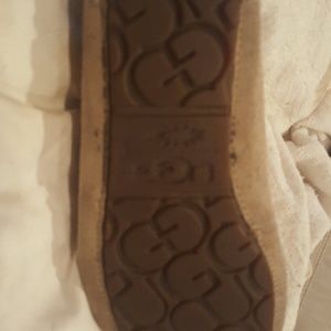 Very comfy slippershoes the bottoms are clean good condition. The sand colored uggs itself i would say would be in ok to good condition. Just need to be cleaned up a little. The picture will show above. Authentic
