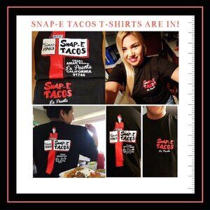 From the original iconic Snap-E Tacos La Puente restaurant which officially closed in 2021, these limited Snap-E Tacos T-Shirts are only available until sold out. We will not be printing or selling any more.