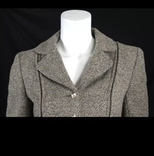 · Exterior: Multi-brown wool tweed fabric (100% Wool) No pockets.